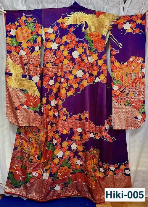 元々大きく(長く)仕立ててある色打掛けと引き振袖に辿り着きました