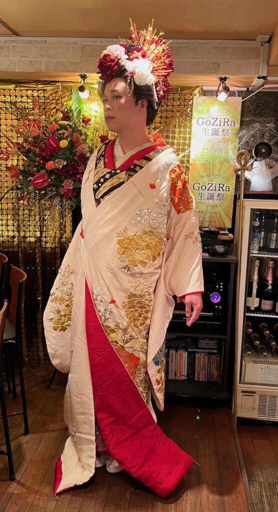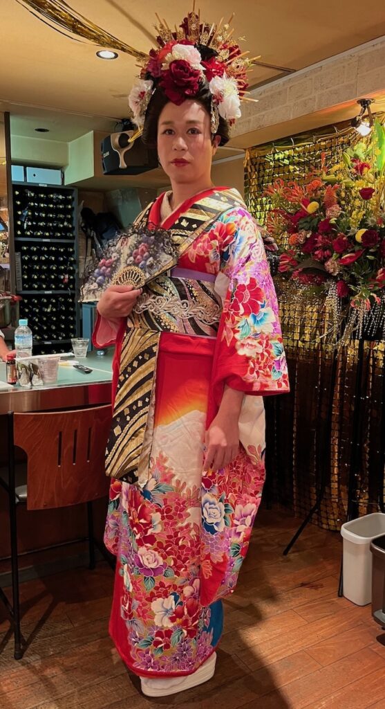 ♡こちらは引き振袖と色打掛けを中国の時代劇ドラマ武則天風にアレンジ着付けさせて頂いた新宿2丁目Diannaのママさん♡